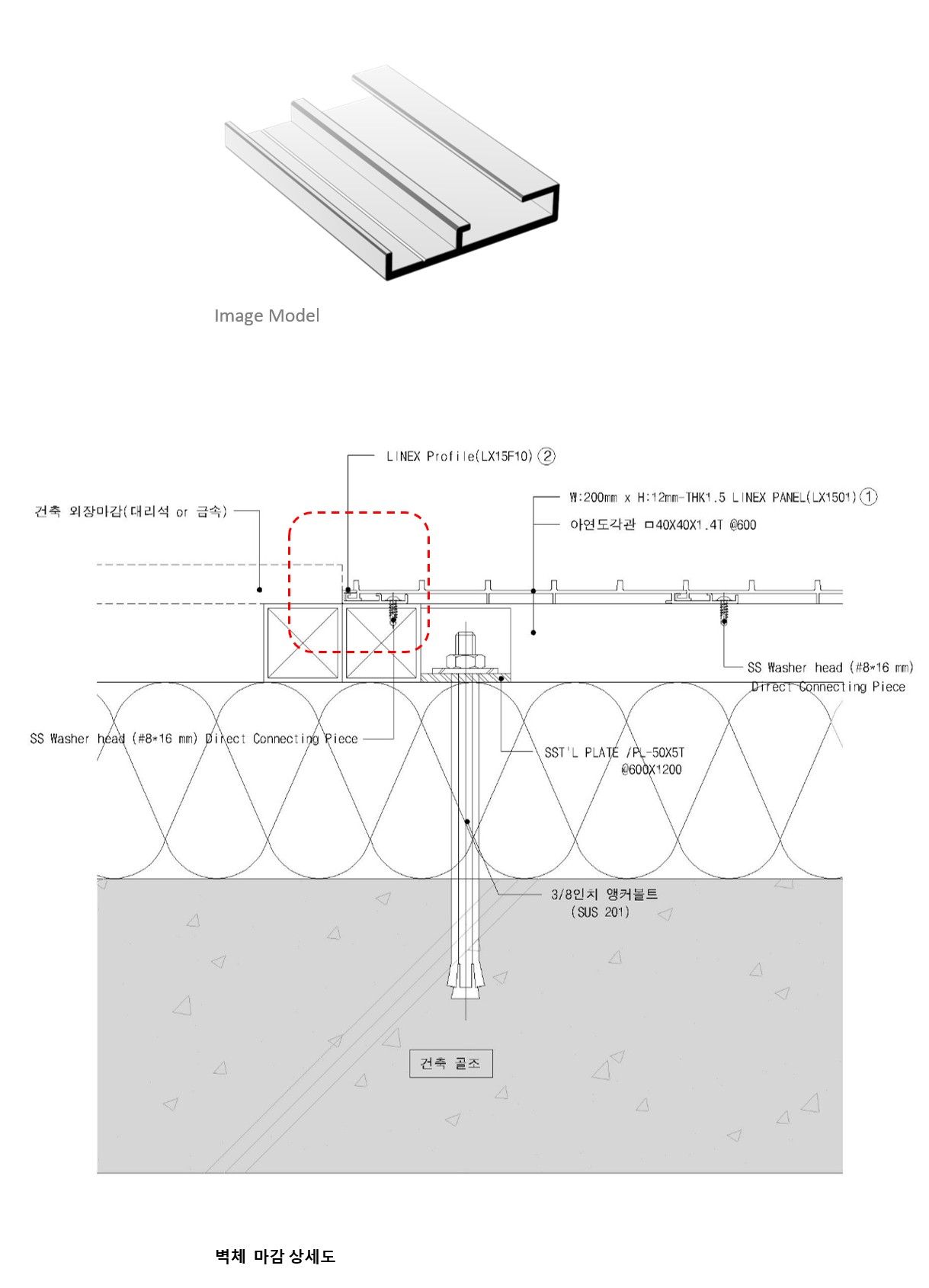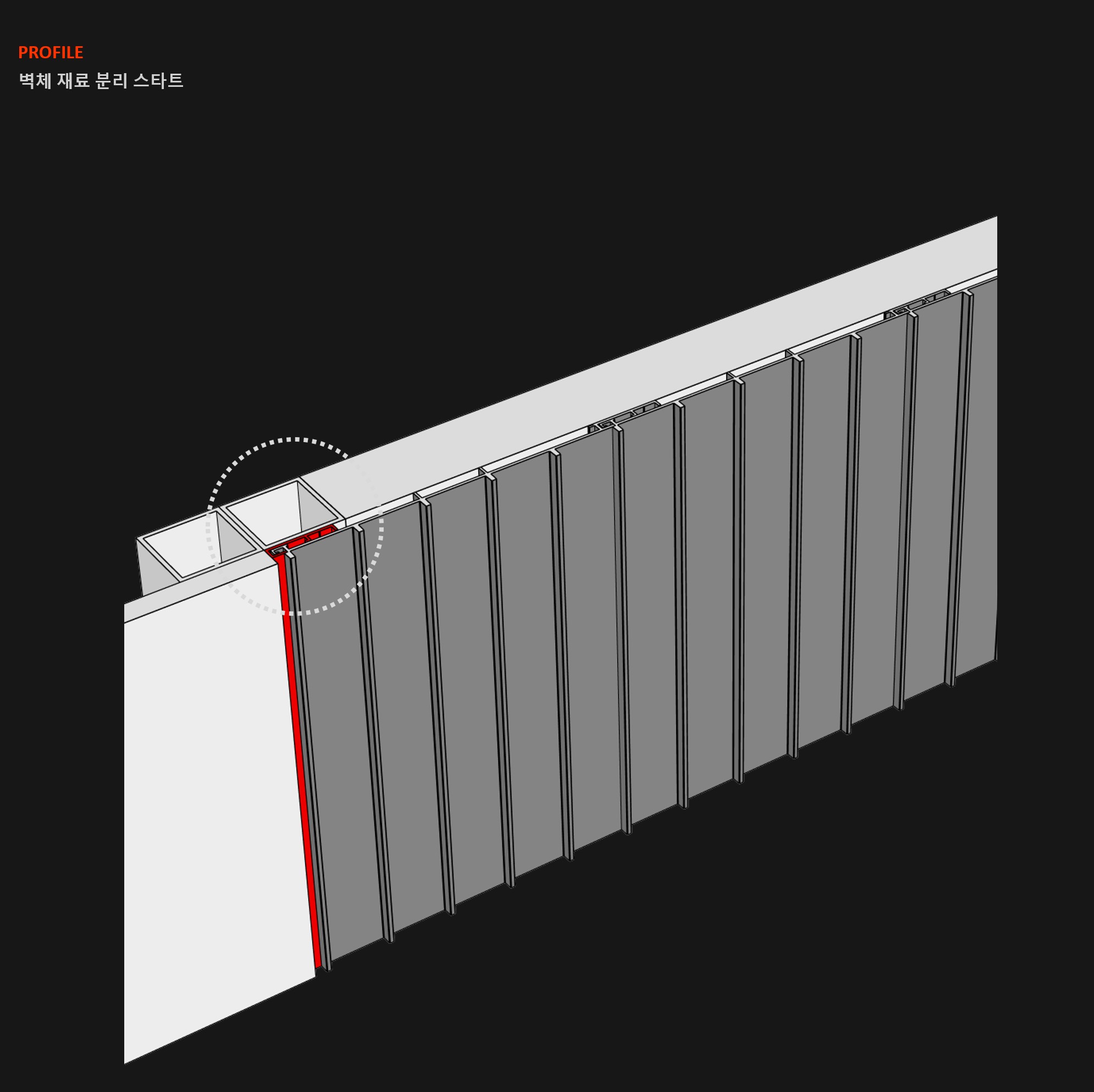 벽체 판넬 재료분리와 단면 시작할 경우 시공 상세도