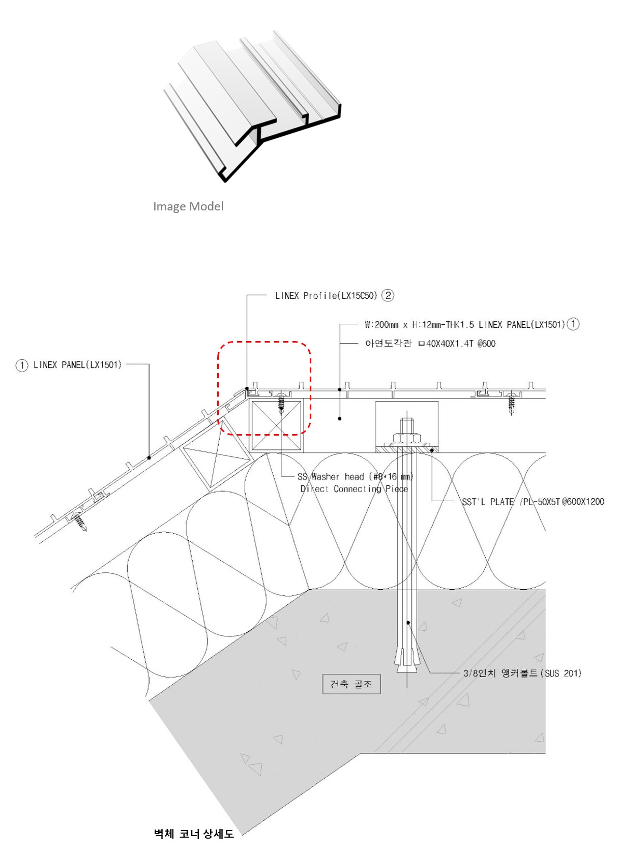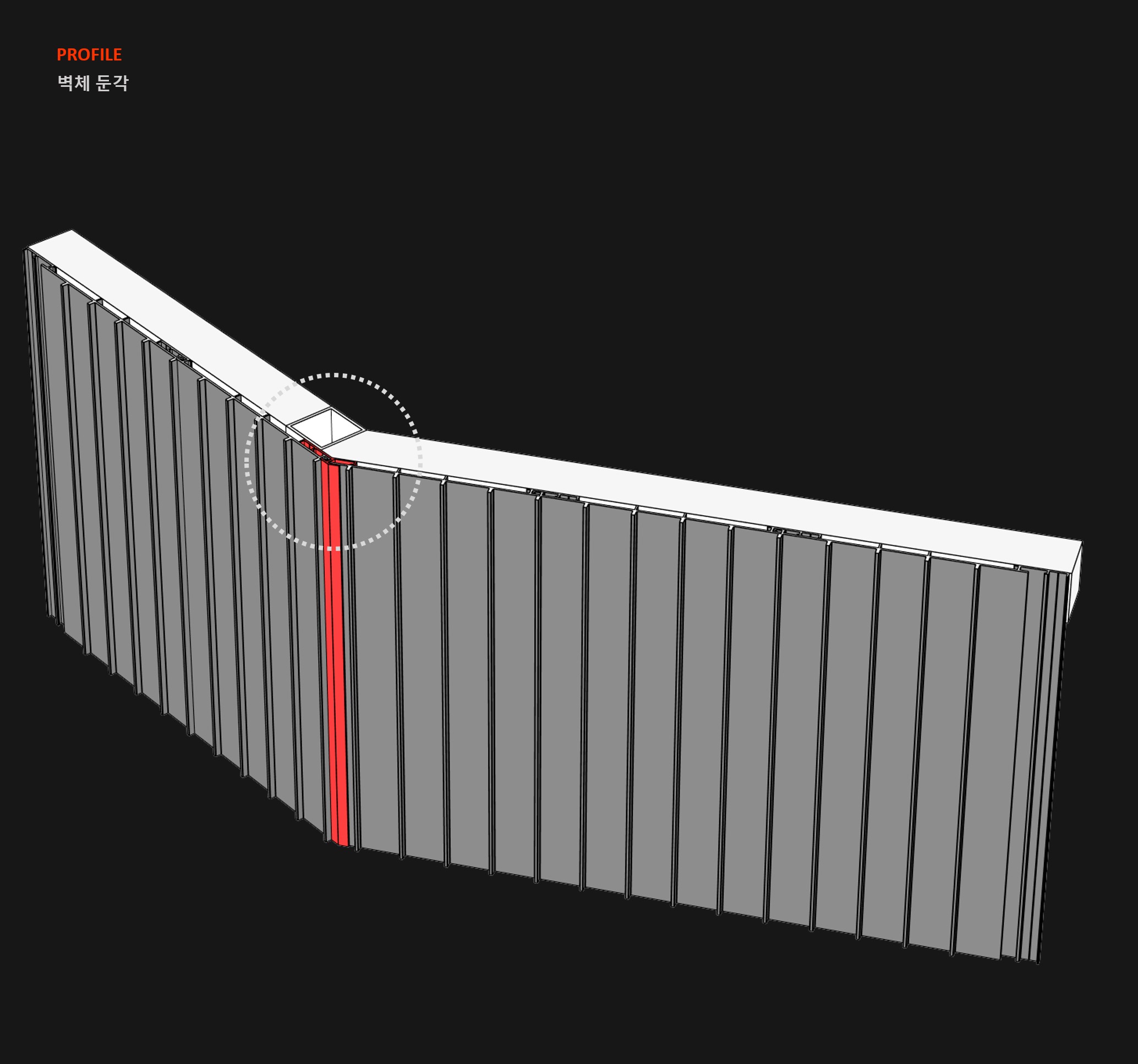 벽체 판넬 시공 시 둔각 코너에 사용하는 시공 상세도