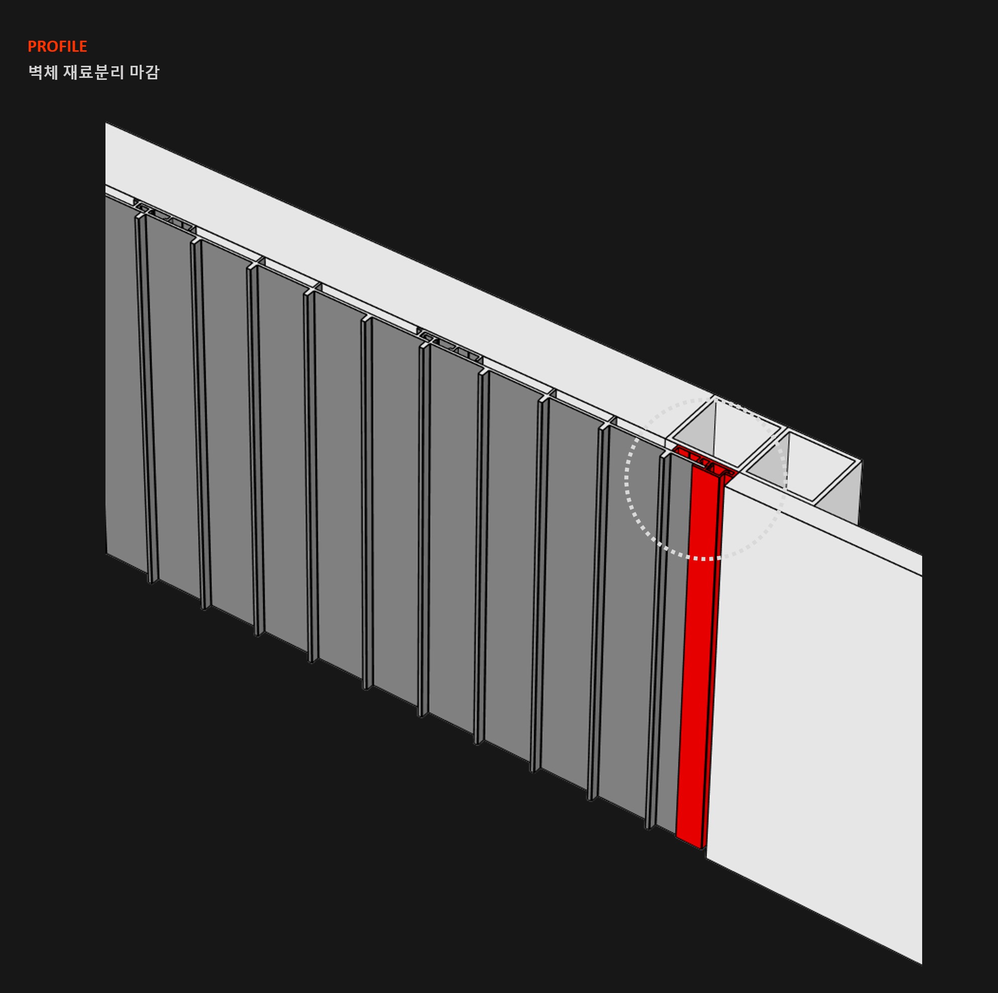 벽체 판넬 재료분리와 단면 마감할 경우 시공 상세도