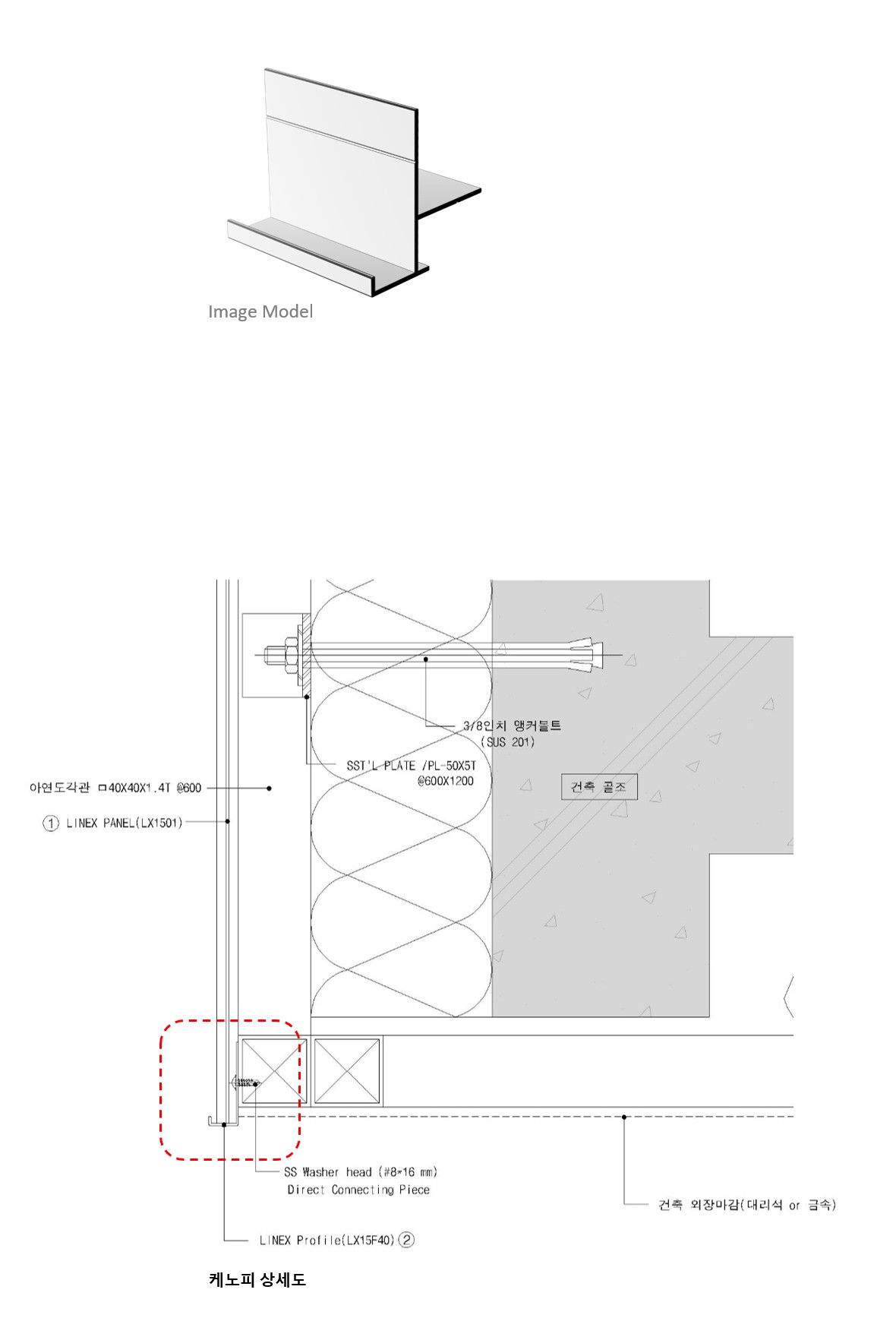 벽체 케노피와 창호 상부 마감할 경우 시공 상세도