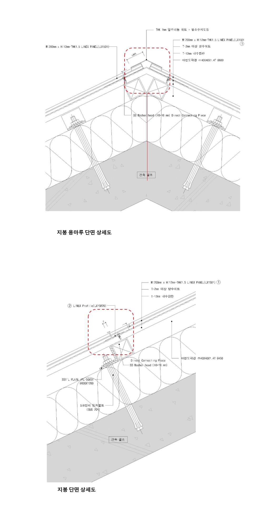 라이넥스판넬로 지붕 마감할 경우 시공 상세도